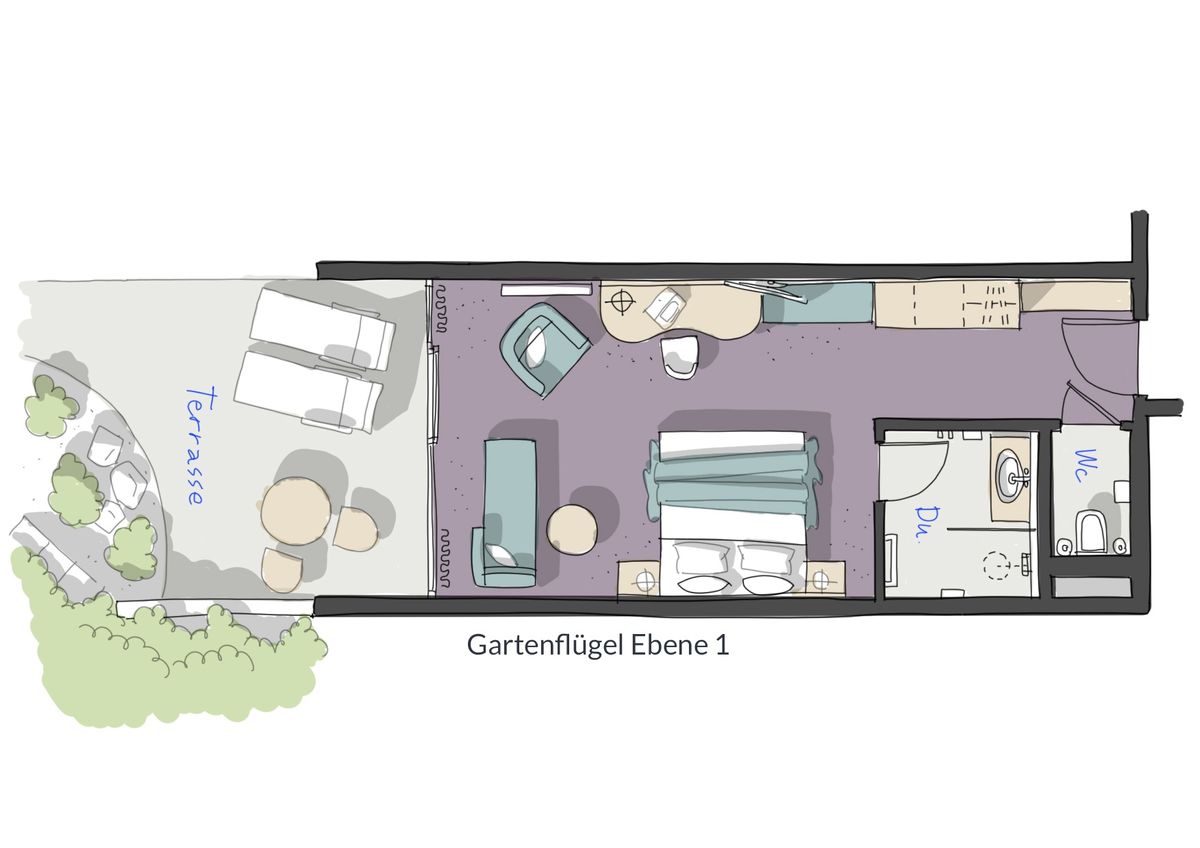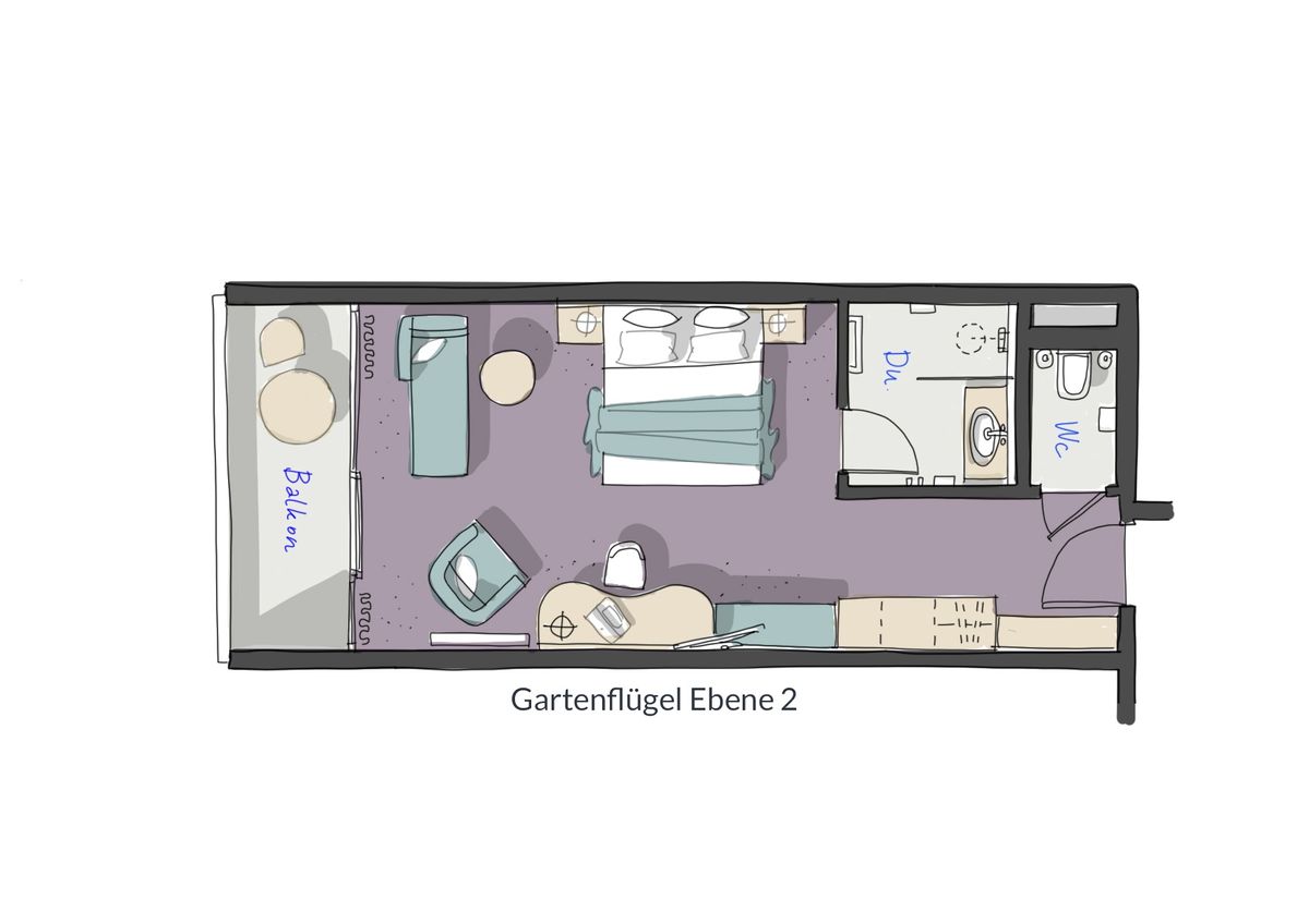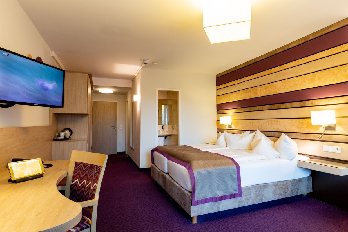 Die Doppelzimmer sind 36 m² groß. Sie sind ausgestattet mit separatem WC, Dusche, Föhn, Bademäntel, Badetasche, Wasserkocher für Tee- und Kaffeezubereitung, Balkon oder Loggia, Klimaanlage, Telefon, WLAN-Internetzugang gratis, Suitepad, Flat-TV, Radiowecker, Minibar (für Sie inklusive), Zimmersafe und Sitzecke.